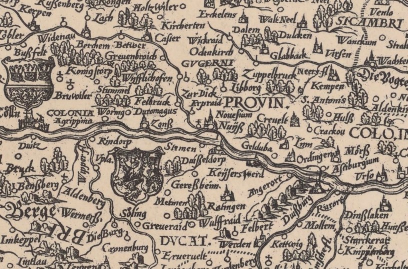 Erich Wisplinghoff, Mittelalter und frühe Neuzeit. Von den ersten schriftlichen Nachrichten bis zum Ende des Jülich-Klevischen Erbstreits (ca. 700–1614), in: Hugo Weidenhaupt (Hrg.), Düsseldorf. Geschichte von den Ursprüngen bis ins 20. Jahrhundert, Band 1: Von der ersten Besiedlung zur frühneuzeitlichen Stadt (bis 1614), S. 161–445, besonders S. 211f. und S. 282–286
