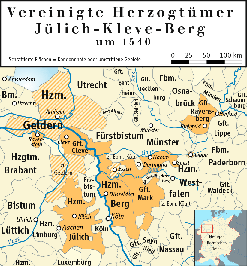 Ziegelbrenner., Karte der Vereinigten Herzogtümer Jülich-Kleve-Berg (1540), CC BY-SA 3.0