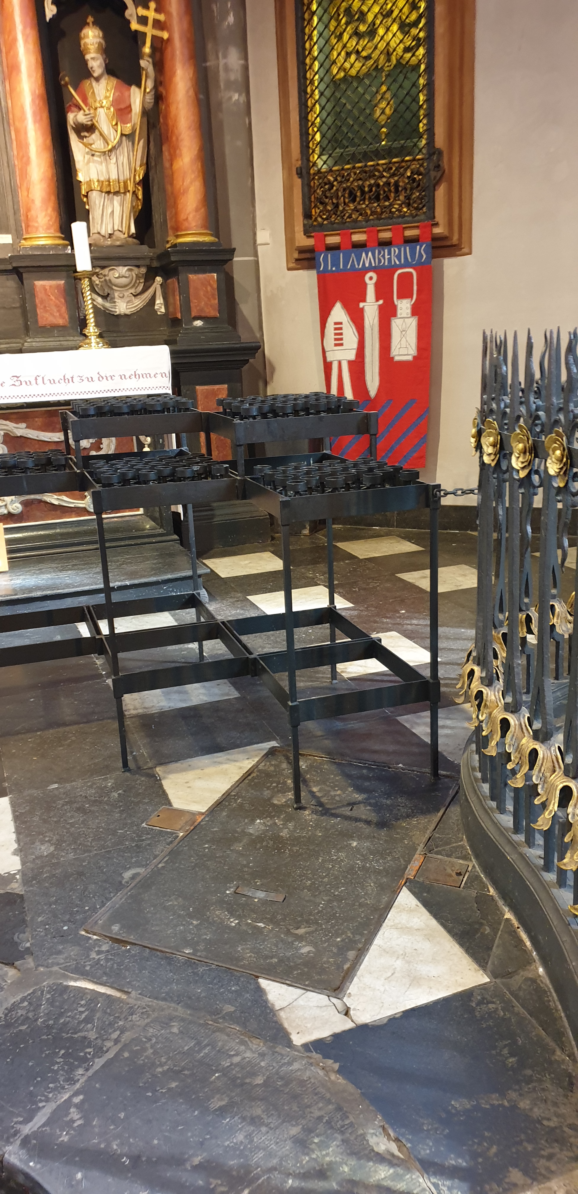 Die Gruft liegt direkt unter dem einige Jahre später dort errichteten monumentalen Grabdenkmal für den Herzog, das ihm sein Sohn Johann Wilhelm errichten ließ. (23)
